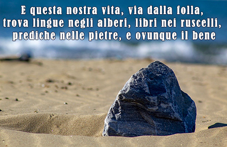 - E questa nostra vita, via dalla folla, trova lingue negli alberi, libri nei ruscelli, prediche nelle pietre, e ovunque il bene. – William Shakespeare