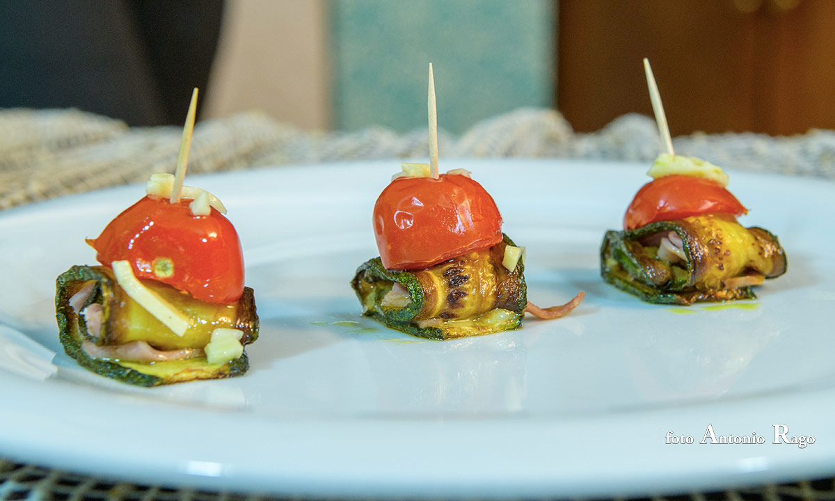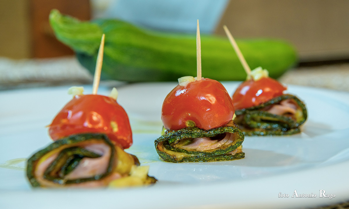 Vediamo, a questo punto, quali sono gli ingredienti per fare un buon secondo a base di zucchine in maniera facile e veloce, con tutti i consigli e i trucchi dello chef Carmine Santoro. Quali sono gli ingredienti e per quante persone? “Per quattro persone, occorrono 500 grammi di zucchine, 150 grammi di prosciutto cotto o crudo o di lardo di colonnato o di pancetta, 300 grammi di pachino, 150 grammi di provola di Agerola”. Qual è il procedimento, passo passo, della ricetta? “Occorre, innanzitutto, tagliare a fette orizzontali le zucchine lavate ed asciugate. Bisogna, poi, portarle a metà cottura in una padella unta con olio di oliva. A questo punto, unire la provola e l’insaccato preferito, arrotolare e fermare tutto con uno stuzzicadenti. Riporre gli spiedini in padella a fuoco basso e con coperchio ed ultimare la cottura”.
