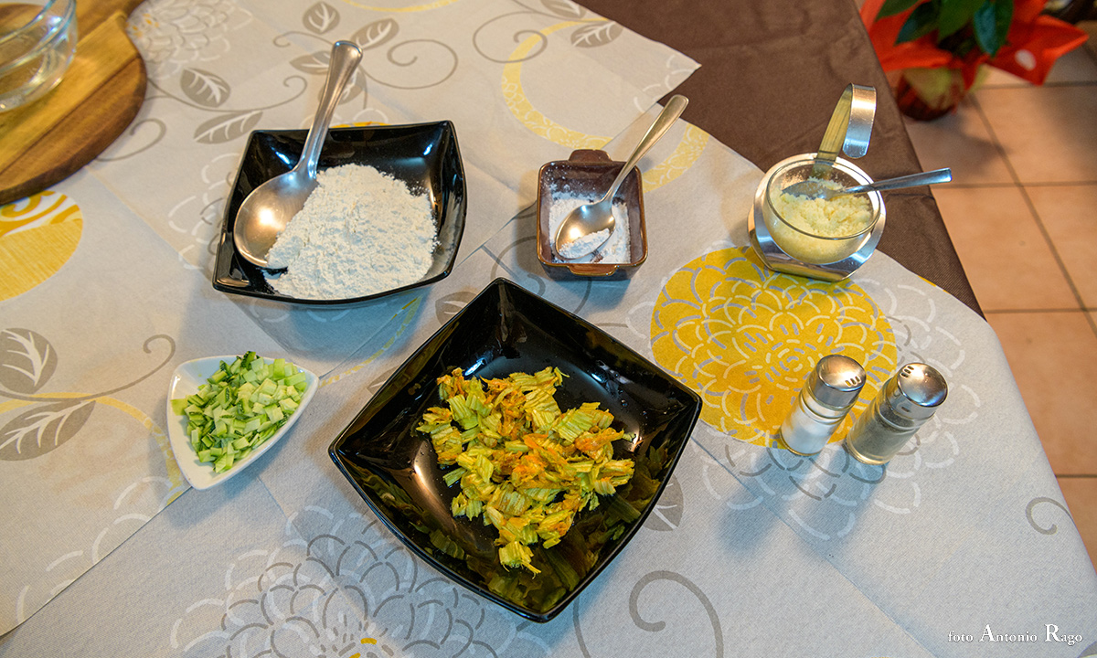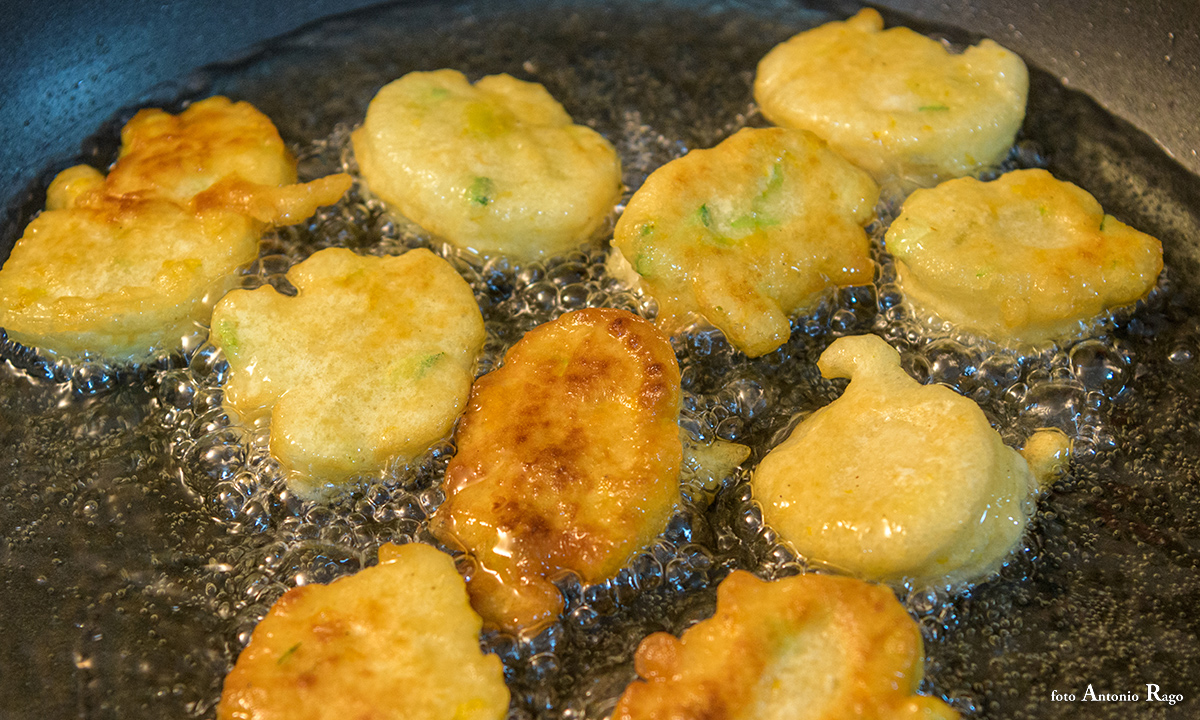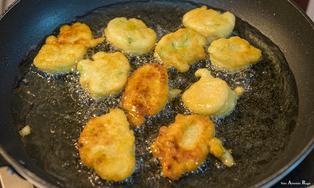 “Per la pastella, inserire in un recipiente, abbastanza ampio, l’acqua, la farina, il lievito, il sale, un pizzico di pepe nero. Impastare il composto con una frusta a mano fino ad ottenere una pastella liscia ed omogenea”. Cosa prevede il procedimento, poi? “Occorre, allora, unire i petali dei fiori di zucca (tagliati in piccoli pezzi) e le zucchine tagliate a sfoglia e mescolare il tutto. Intanto, scaldare l’olio di semi in una padella e non appena sarà alla giusta temperatura, con la punta di un cucchiaio, bisogna prelevare una piccola quantità di pastella e immergerla nell’olio. Durante la cottura le frittelle si gonfieranno e saliranno a galla. Lasciate cuocere le frittelle per pochi secondi affinché diventino dorate. Infine, scolare e riporre su carta assorbente”.