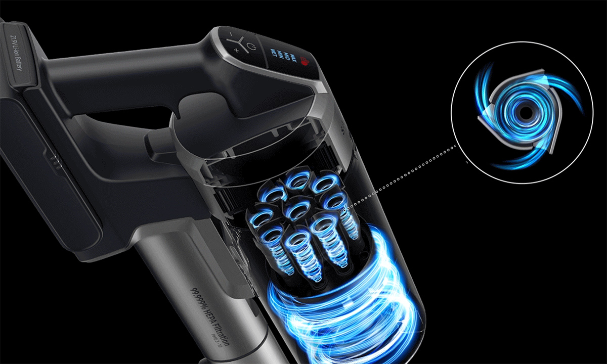 I pulsanti consentono di passare da tre livelli di potenza: basso, medio e massimo. I livelli di vengono visualizzati su un piccolo display sopra il pulsante di accensione. Nel pacchetto, sono inclusi molti accessori, tra cui una spazzola morbida (per tipi di pavimento generali), un mini utensile motorizzato (per tappeti e letti), una spazzatrice rotante (per pulire), uno strumento per fessure (per aree strette difficili da raggiungere) e uno strumento di combinazione (per piani di tavoli e superfici di ogni genere). Facendo riferimento ai test degli utenti, passando l’aspirapolvere in un soggiorno di 10 mq, in soli 4 minuti, a una potenza media e con la spazzola morbida si riesce a rimuovere la maggior parte dello sporco sul pavimento.