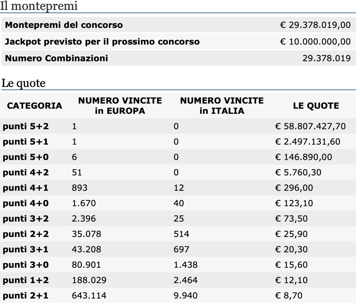 Quote estrazione EuroJackpot del 16 ottobre 2020