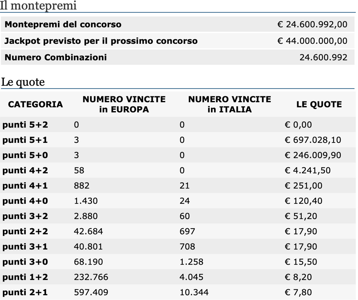 Risultati Euro-Jackpot: quote e montepremi di stasera