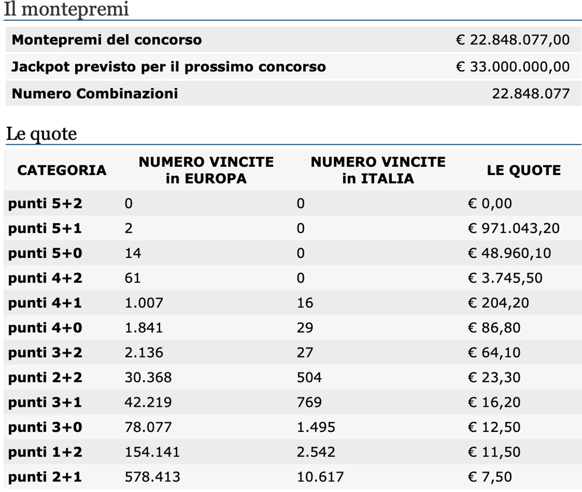 Risultati EuroJackpot: quote e premi di oggi