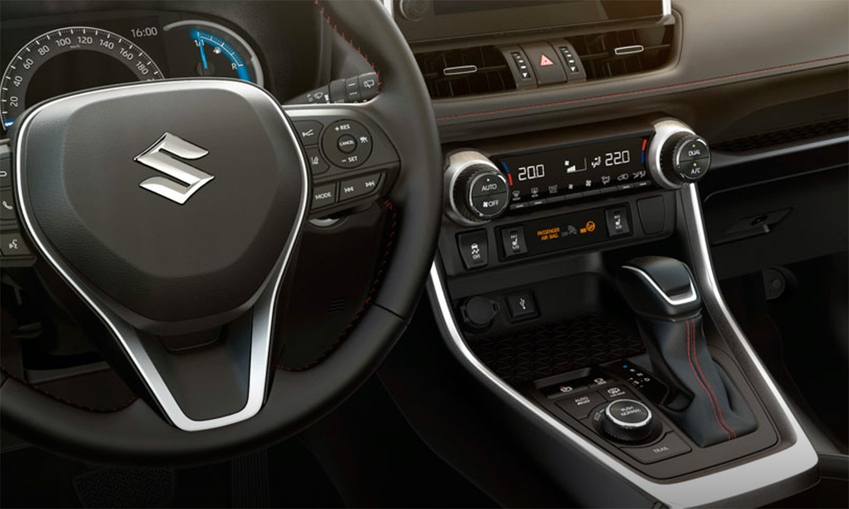 I cerchi in lega sono da 19”, mentre i gruppi luminosi sono LED; particolari poi i passaruota molto alti e distanziati rispetto al posizionamento delle ruote stesse. Questo denota un assetto elevato e di conseguenza ottime sospensioni di dotazione. A conferma di quanto appena detto c’è la prova su strada della nuova Suzuki Across ibrida plug-in. Il test drive ha evidenziato proprio tra le note più positive la risposta alle sollecitazioni dell’asfalto e l’autonomia che tocca gli 1,1 l/100 km. Basse le emissioni, con 22g/Km nel ciclo WLTP, e di alto livello la ricarica energetica in grado di generare un ripristino completo in sole 5 ore.