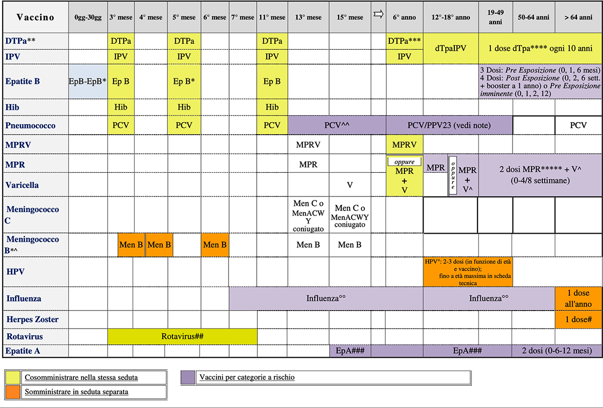 • Anti-meningococcica B. 3 o 4 dosi nel primo anno di vita, a seconda del mese di somministrazione della prima dose. Fortemente raccomandata per i nati a partire dal 2017.