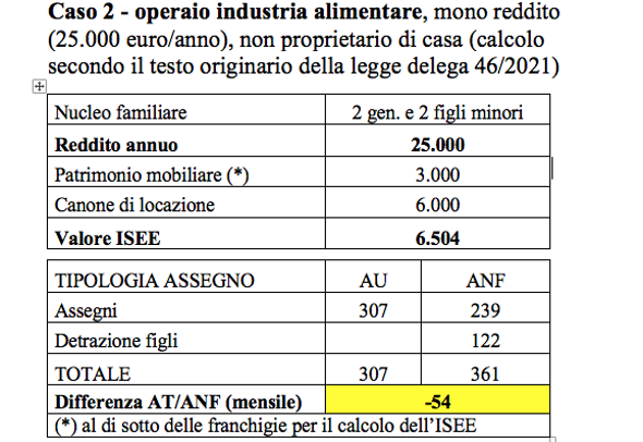 - 2° CASO: Famiglia di operaio dell’industria monoreddito(25mila euro/anno)