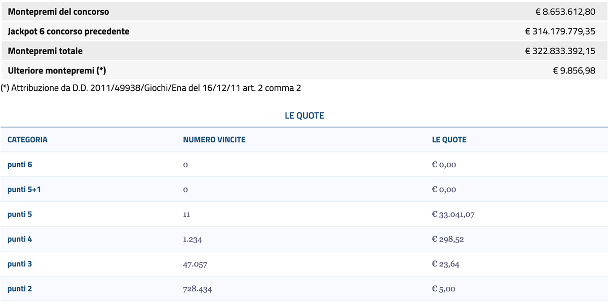 Risultati SuperEnalotto di oggi, Jolly e SuperStar