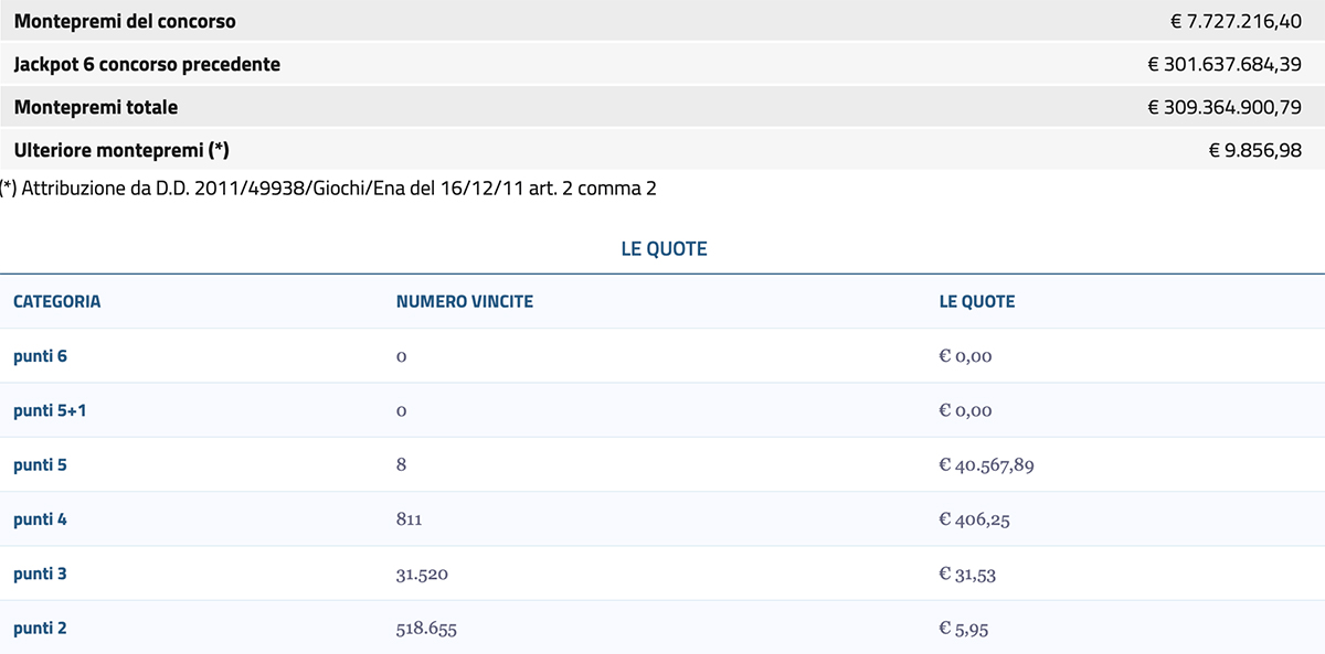 Risultati Superenalotto di oggi, Jolly e SuperStar