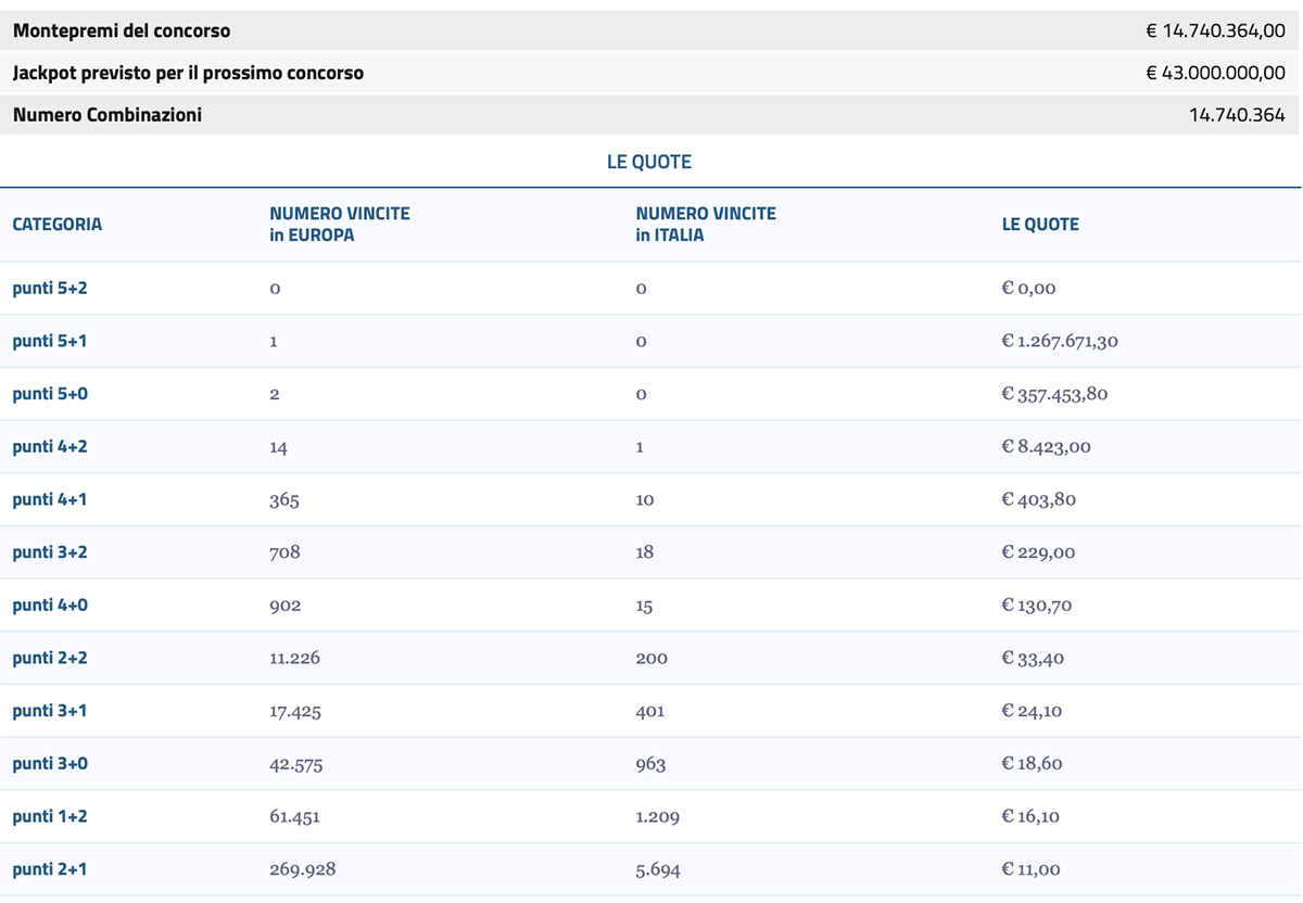 In questo caso, per chi gioca online, tutte le vincite saranno accreditate sul proprio account personale.Mentre per chi gioca in ricevitoria, è necessario esibire la ricevuta vincente all’esercente, che attesti l’avvenuta vincita. Il periodo di tempo necessario per richiedere un premio dipende dal paese in cui hai acquistato il biglietto. E’ il regolamento ufficiale ad indicare nel dettaglio quali sono le modalità corrette per la riscossione delle vincite.