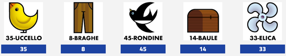 Simbolotto è l’opzione di gioco costituita da una combinazione casuale di 5 simboli su 45 disponibili. I simboli sono abbinati alle giocate sulla ruota Nazionale, attualmente in promozione, e si conosceranno subito dopo quelli usciti su tutte le ruote, incrementando le probabilità di vincita per ciascuna giocata.