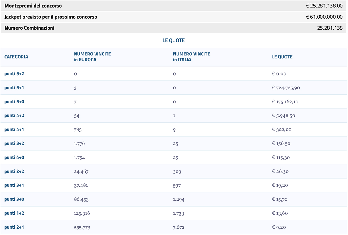 Quote e premi EuroJackpot di oggi in diretta