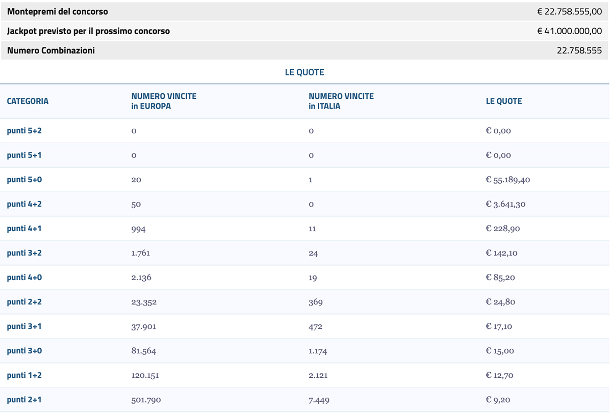 Estrazione EuroJackpot 22 agosto 2025: numeri, quote e premi