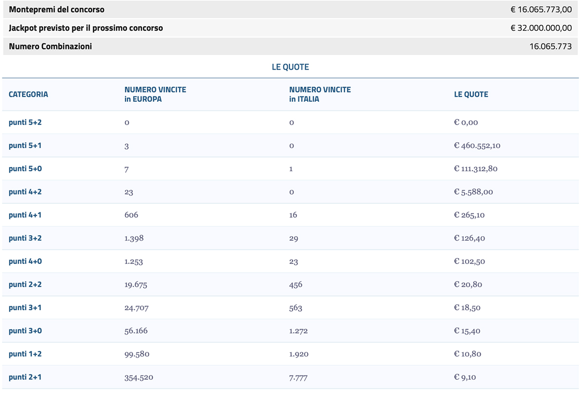 A prendere parte a questa speciale lotteria sono ben 18 paesi europei. A rendere ancora più coinvolgente il gioco, sono i numerosi premi di categoria inferiore alla prima, che si possono vincere indovinando almeno 3 delle 7 cifre estratte. Rivediamo brevemente quali sono le modalità di partecipazione di questo celebre gioco che anima gli europei ogni martedì e venerdì sera.