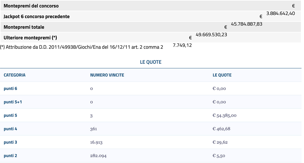 Numeri vincenti SuperEnalotto, Jolly e SuperStar