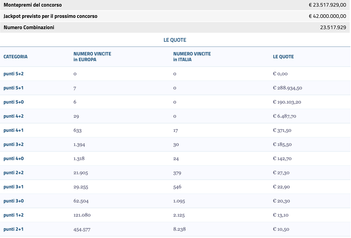 Estrazione EuroJackpot del 21 ottobre 2025: schedina vincente